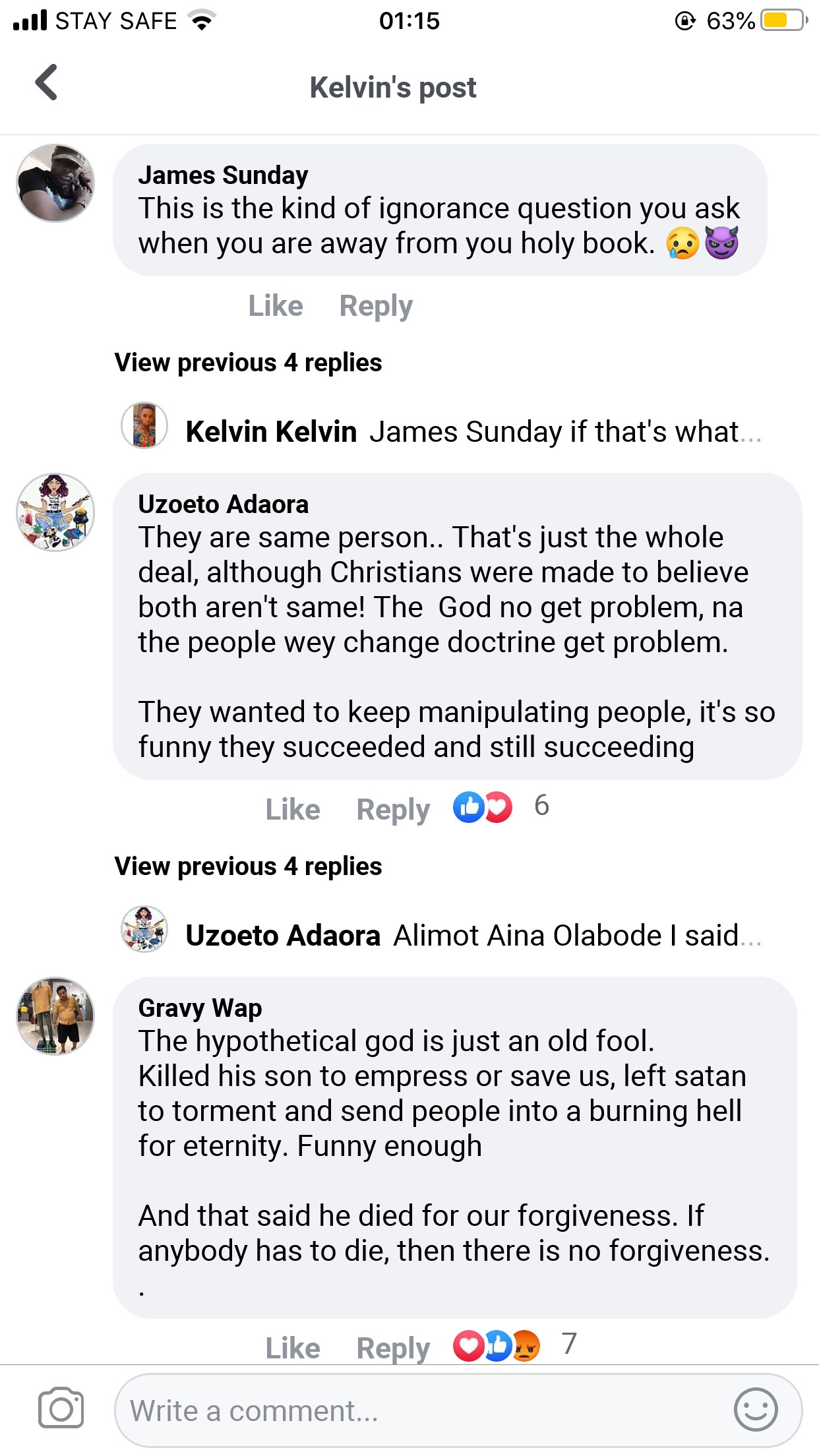 A man named Kelvin has gone viral on the most popular social media network, Facebook after he made a controversial statement that has made many child of God talking.